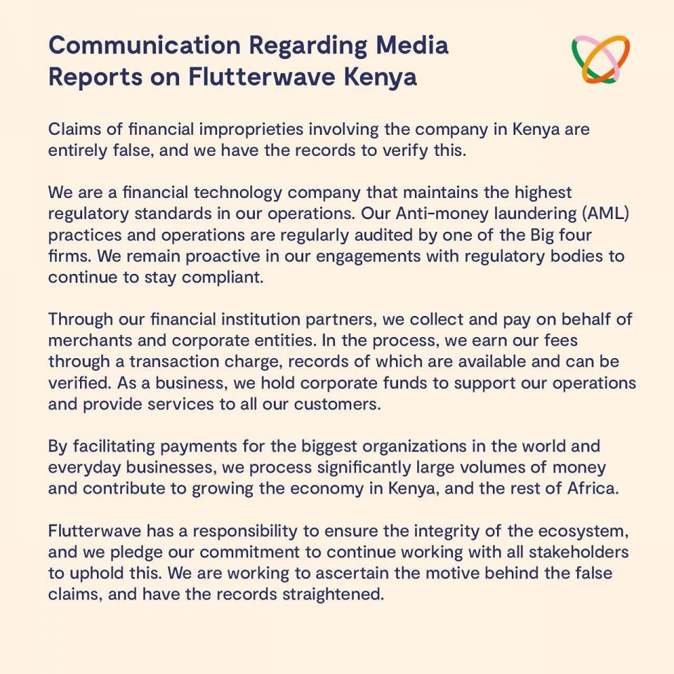 • Flutterwave responds to allegations