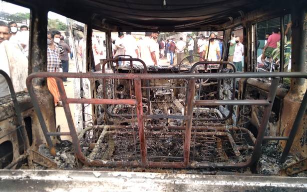 They set ablaze a jeep in which Kunnathunad circle inspector V.T. Shajan and four other police personnel arrived, while two other police jeeps too were damaged. The personnel were also roughed up, while most of them suffered head injuries in stone pelting.