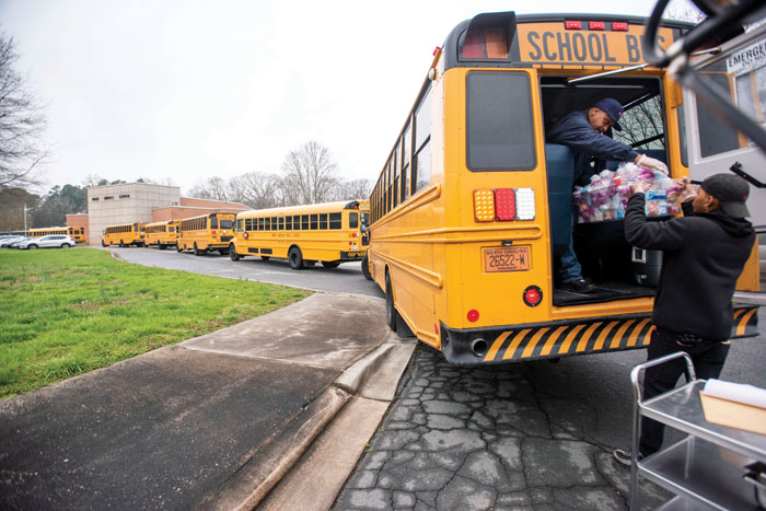 The district does not feed every student every school day when schools are open, but in short order Rowan-Salisbury Schools has prepared for the foreseeable future to make enough food to feed every student lunch and breakfast each weekday for the forseeable future — roughly 18,000 lunches and 18,000 breakfasts a day. To claim meals for themselves, and even siblings who are too young to attend school, students have to show up to nearby bus stops or claim them in car rider lines at schools. Parents can also claim meals. They are all free.