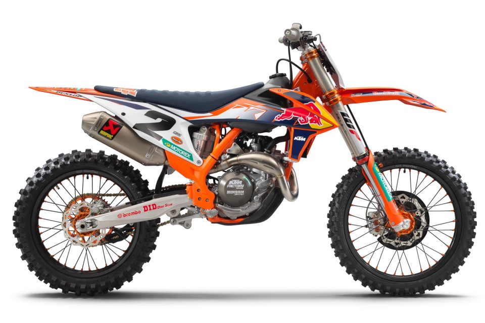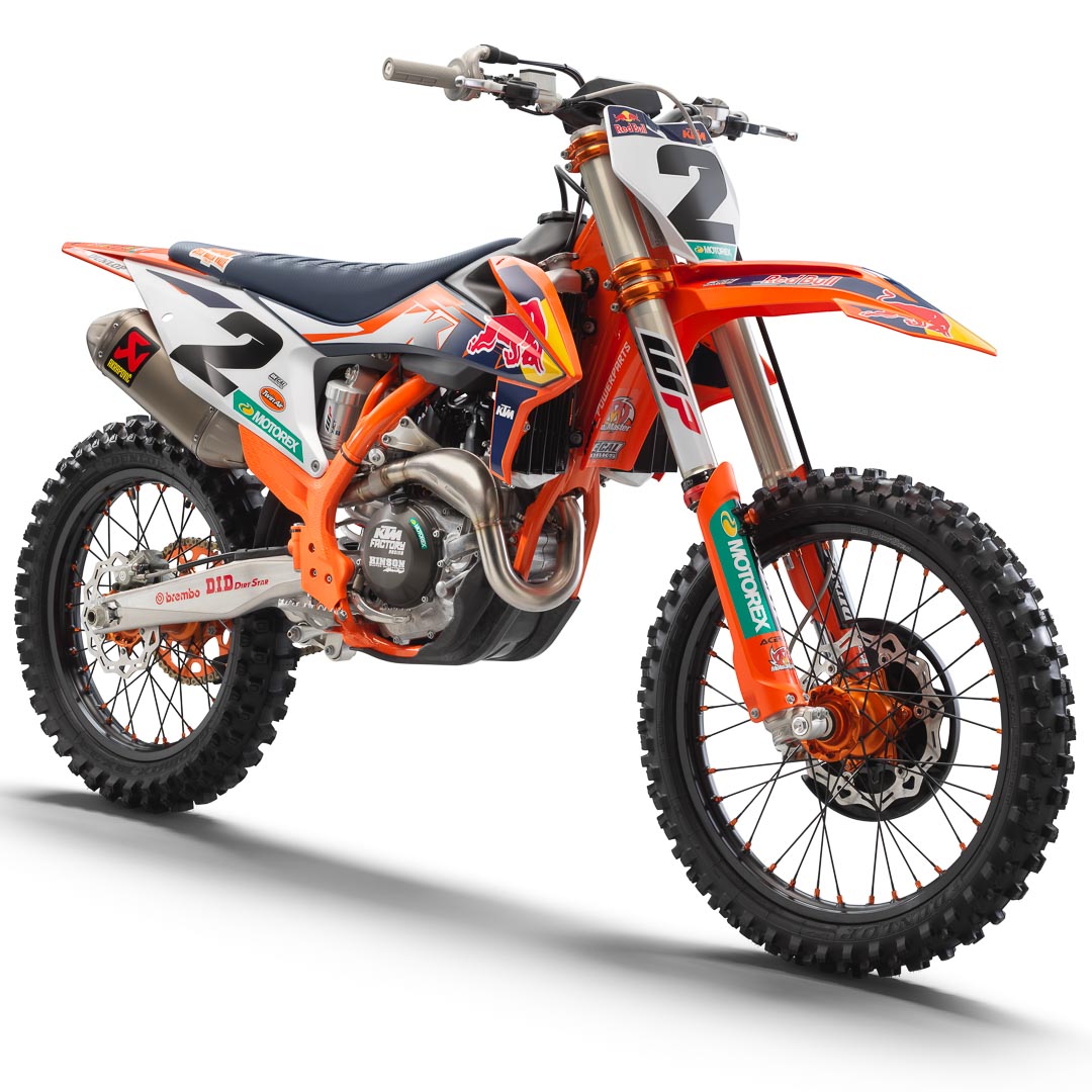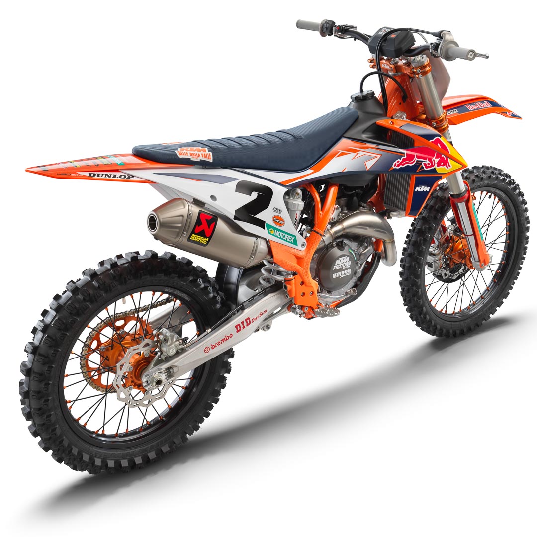 - It’s not a Factory Edition without a Factory graphics package. Along with the latest Red Bull KTM Factory Racing graphics, there is an orange frame.
