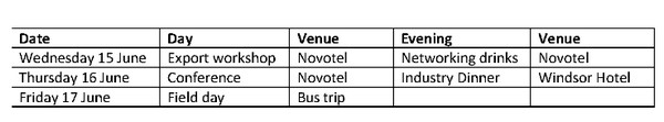 On the field day, parties can head out to Steritech and a freight forwarder to see export processes conducted first hand, including irradiation, fumigation, AO and known consignor inspections well as some tech demos.