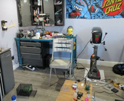 A work area inside a home on Roy Ave. in San Jose where ghost guns were being built. (Santa Clara County District Attorney’s Office)