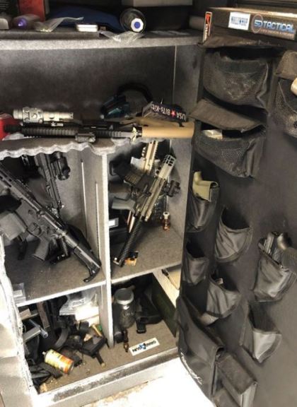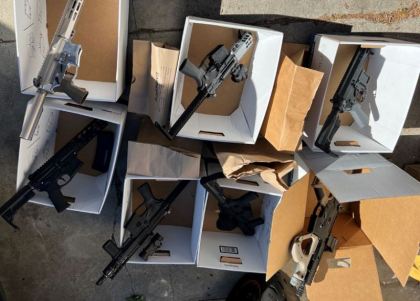Officers seized eight assault rifles, two handguns, central parts of assault rifles, three partially completed machine pistols, ammunition, three 3D printers, and suspected fentanyl.