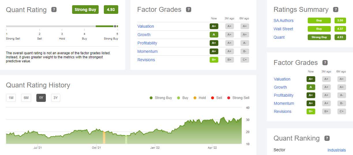 SBLK Quant Ratings and Factor Grades (Seeking Alpha Premium)