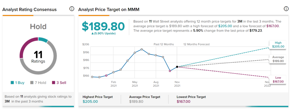 Turning to Wall Street, MMM has a Hold consensus rating based on 1 Buy, 7 Hold, and 3 Sell ratings assigned in the past three months. At $189.80, the average MMM price target implies 5.90% upside potential.
