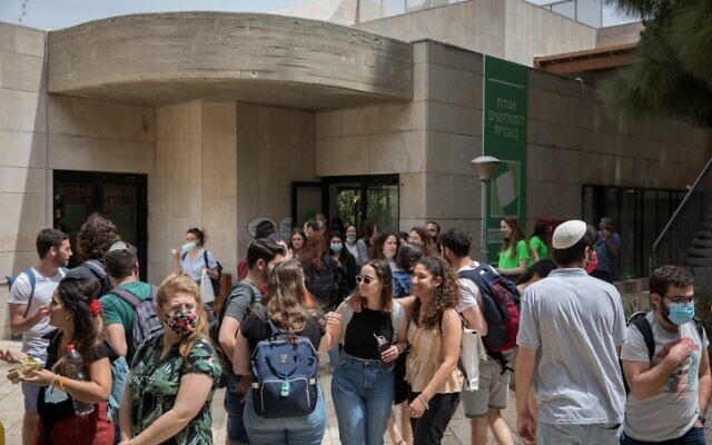 Students at Hebrew University’s Mount Scopus campus, April 19, 2021. (Olivier Fitoussi/FLASH90)