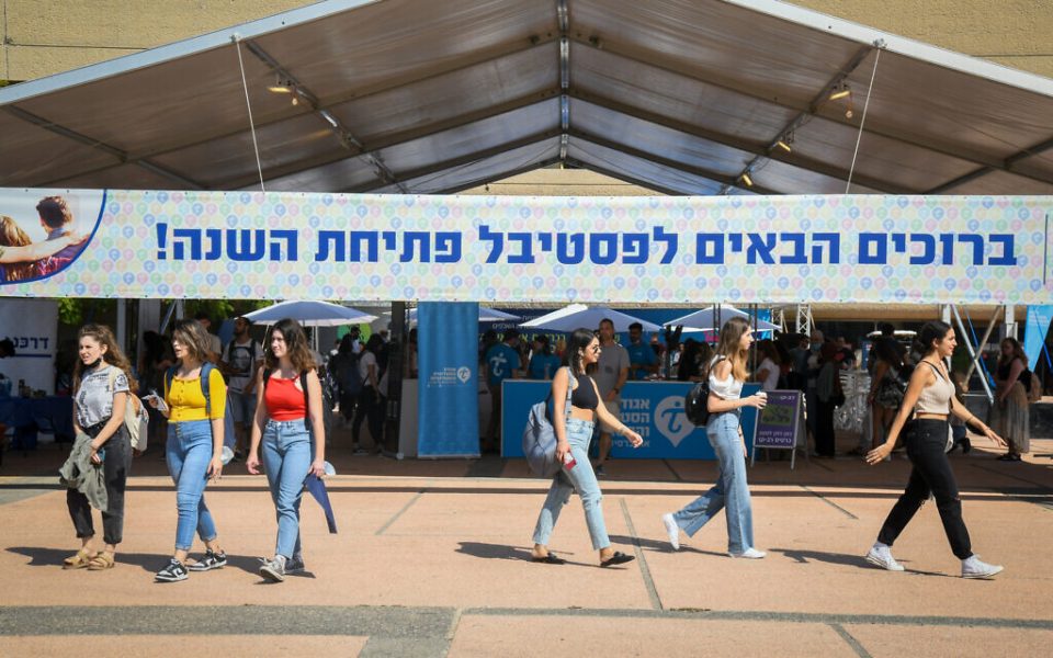 Students at Hebrew University’s Mount Scopus campus, April 19, 2021. (Olivier Fitoussi/FLASH90)