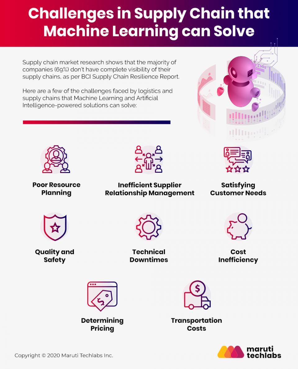 Here are a few of the challenges faced by logistics and supply chains that Machine Learning and Artificial Intelligence-powered solutions can solve: