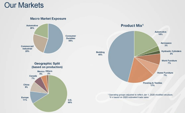 Leggett & Platt is a diversified manufacturer of bedding, furniture and furniture components, and automobile seats with a relatively small market capitalization of a little under $5 billion. Despite its relatively smaller size, LEG has been around for 136 years (founded in 1883) and raised its dividend for 49 straight years, making it one year away from becoming a Dividend King. This company (specifically, one of its founders, J.P. Leggett) literally invented the bed spring.