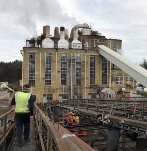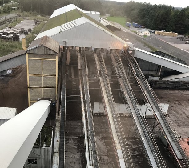 The peat is drawn in by locomotive and wagons from the bogs. It is blended in order to achieve suitable moisture and density for the production process. The peat is then fed by conveyors into the factory, where it is screened, with a small percentage fed to the boiler in order to generate steam. The steam is used in the drying process, and it also drives the turbine. The turbine allows the factory to be self-sufficient as it generates ample power to drive all electrical requirements on the site. Following the screening process the peat passes through the driers, where the moisture levels are further reduced to prepare it for pressing. As it passes through the presses the peat is compressed, and the briquettes take on the familiar shape that we all recognise. From the presshouse the briquettes travel to the baling station, where they are strapped into bales. The bales are then fed by conveyor belt to the palletiser to be palleted and put into storage, ready for sale.