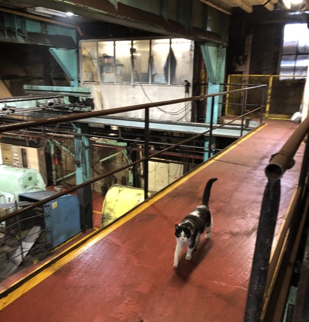 Derrinlough factory is so hidden that the only sign of its existence are the plumes of smoke that rise above the fortress of evergreens. Even some of the locals do not realise they live in proximity to the last surviving briquette factory operated by Bord na Móna. Its staff get to appreciate its honey-coloured brickwork, red and yellow floors, and blue and green painted machinery. This factory that extracted a material that kept the fires going in the hearths of our homes for generations plays an important part in the hearts of this community.