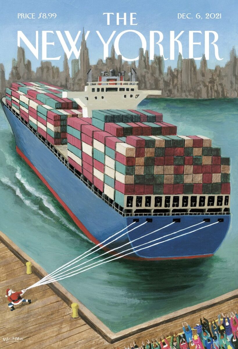 The dream to go mainstream — Did you get to hold court at the table this Thanksgiving and impress your relatives with your deep understanding of America’s newest obsession: supply chains? If not, there’s still time this holiday season with a beautiful new cover on The New Yorker keeping interest alive. The cover story does end with a sad revelation by the artist who drew the picture, though, as he shares how he lost faith in the very man he depicts saving Christmas. We know the real truth: Seafarers, truckers, longshoremen, warehouse staff, brokers and retail workers are the true force behind Operation Save Christmas.