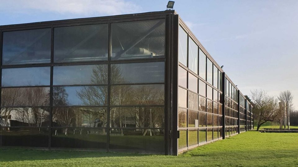 The factory and offices follow STW’s trademark austere geometry and is sited beautifully within a landscape setting. The glass-wrapped, modular plan factory is a simple detached, multi-bay single-storey structure covering 17744.5 m2. It is an elegant combination of form and function. Built of high-quality material, it is a significant exemplar of Dundalk’s, and Ireland’s, modernist architecture.