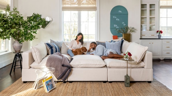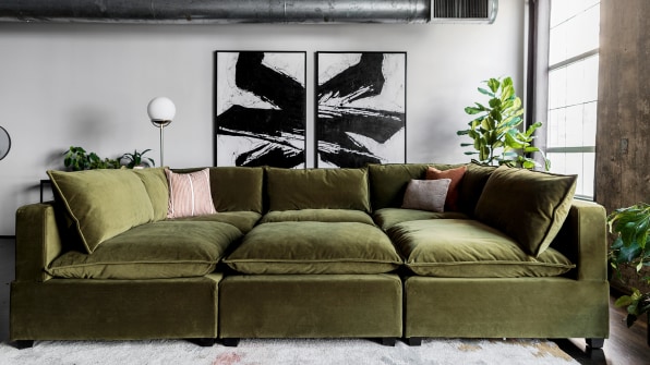 Sharpton says the original plan was to get models out to customers within 3 to 5 days, but launching the business amid the pandemic furniture sales boom with lingering supply chain challenges, some items can take from several weeks up to a few months. I was pinged to schedule my sofa, purchased at the end of November, for delivery in mid-January. By the time it reached the last leg, I picked a time for drop-off, and a team of three delivery guys quickly brought each boxed section of the six-piece Pit into my entryway. It took less than an hour to set up—the biggest tasks are screwing in wooden knob-shaped legs, linking the lightweight sectional pieces together, and fluffing the pillow-top cushions—and almost all of the minimal packaging included was curb-recyclable.