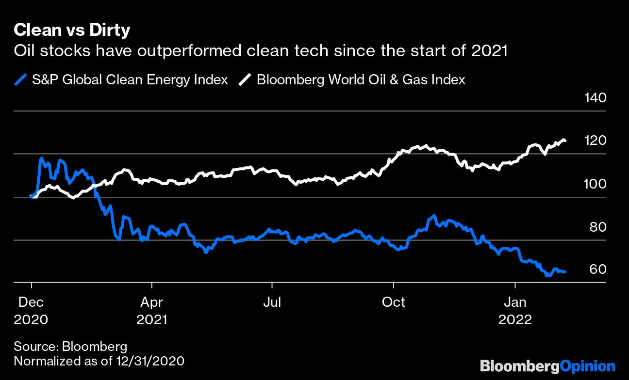 This is a worrying turn for an industry with a vital role in helping the world decarbonize. For investors, it shows how betting on seemingly clear-cut “megatrends,” such as the rise of renewables, can backfire in the short-term. With oil prices rising above $90, oil stocks have massively outperformed clean tech in the past year. It’s a reminder, too, that even highly consolidated industries like wind-power machinery can struggle to pass on rising input costs to customers.