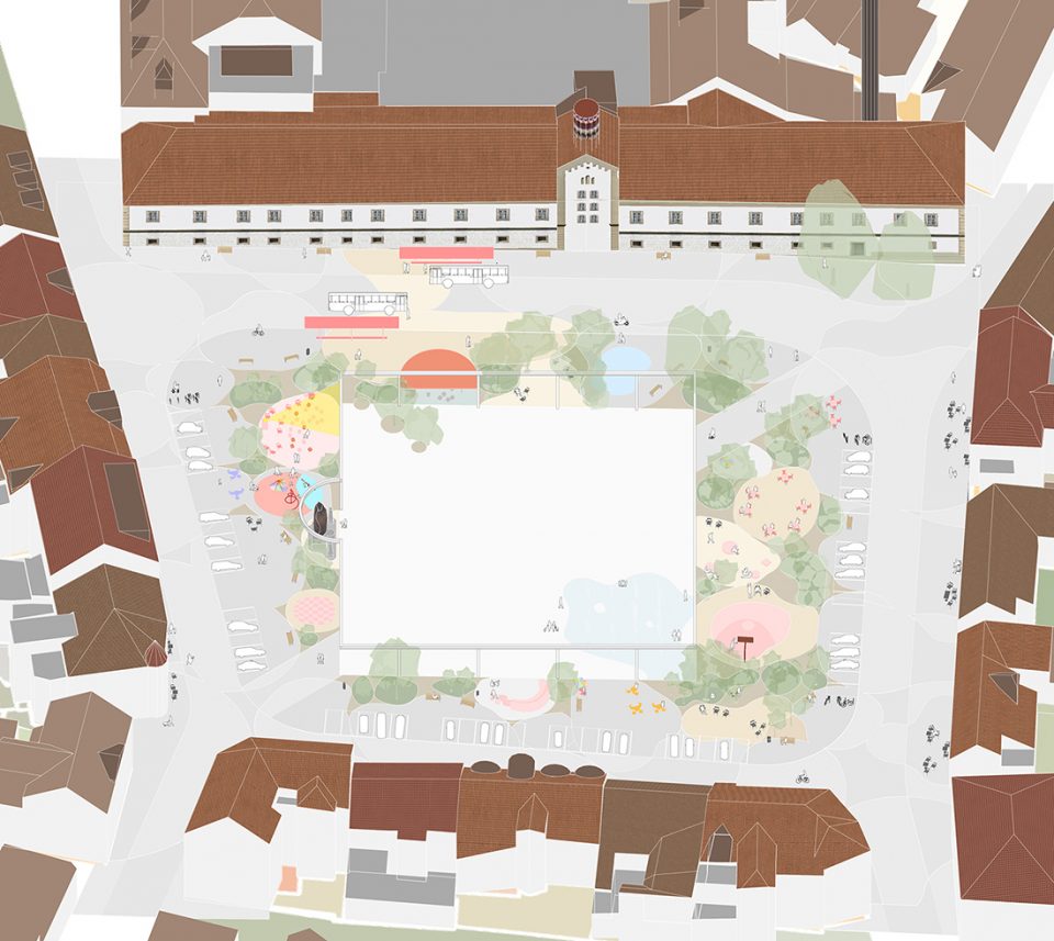 Zbraslav square is too big and undefined in its current condition. It needs the introduction of a human scale and a better definition of its main square, while a set of activities and green pockets may unfold and wrap around it. The new condition offers a strong identity and functional solution that can engage the local residents and provide them with a feeling of belonging. The square fulfills the expectation for an urban and metropolitan layout that can accommodate large events, while at the same time it responds to the local character of Zbraslav and adds to its historic and austere character.