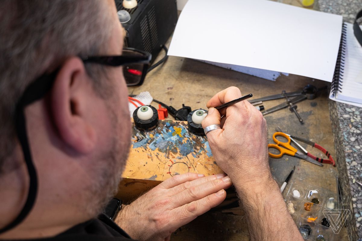 One of Engineered Arts’ employees puts the finishing touch on an eyeball.