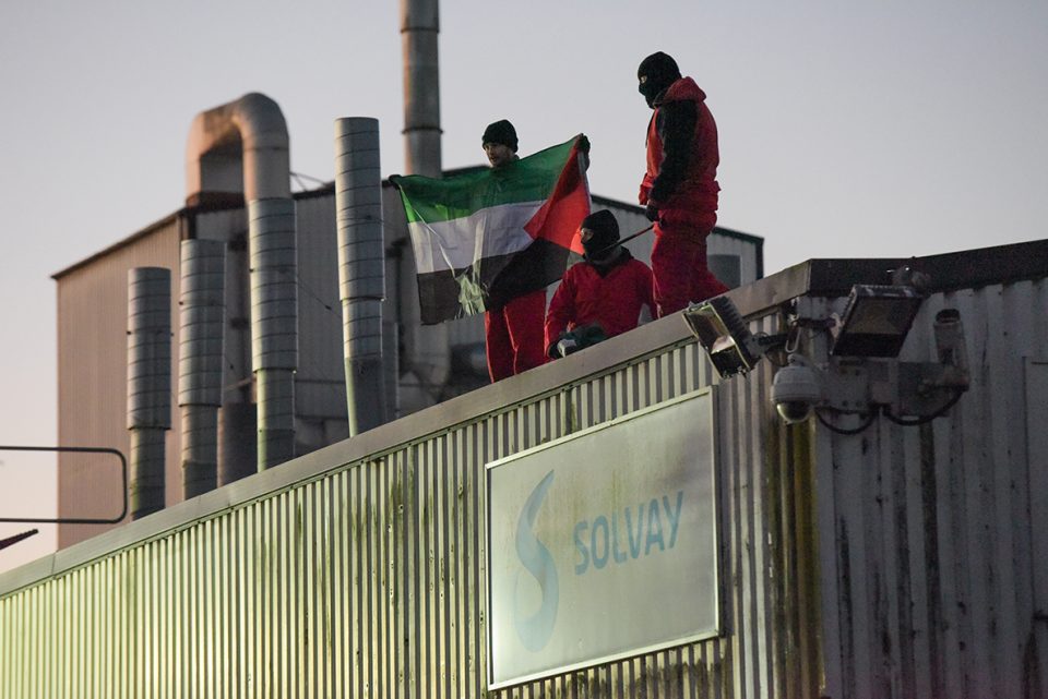A Palestine Action statement said: “This morning activists stormed a materials factory owned and operated by Solvay, a chemicals company complicit in the slaughter of Palestinians.