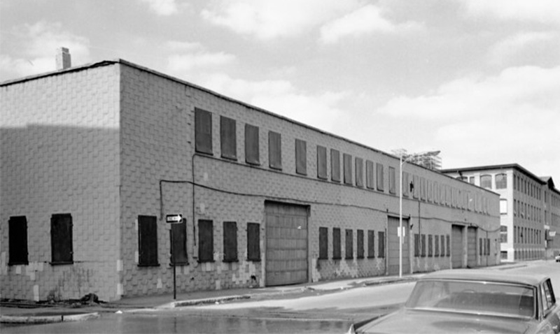 The complex at 185 First St., seen in 1970, was built for Adolph Sommer and Viscol Manufacturing in 1913 and razed in 1986. (Photo: Cambridge Historical Commission)