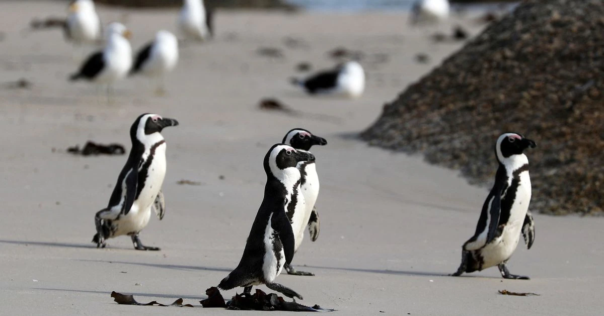 Group of African penguins walk across Seaforth Beach, near Cape Town, South Africa, November 3, 2020. REUTERS/Sumaya Hisham
