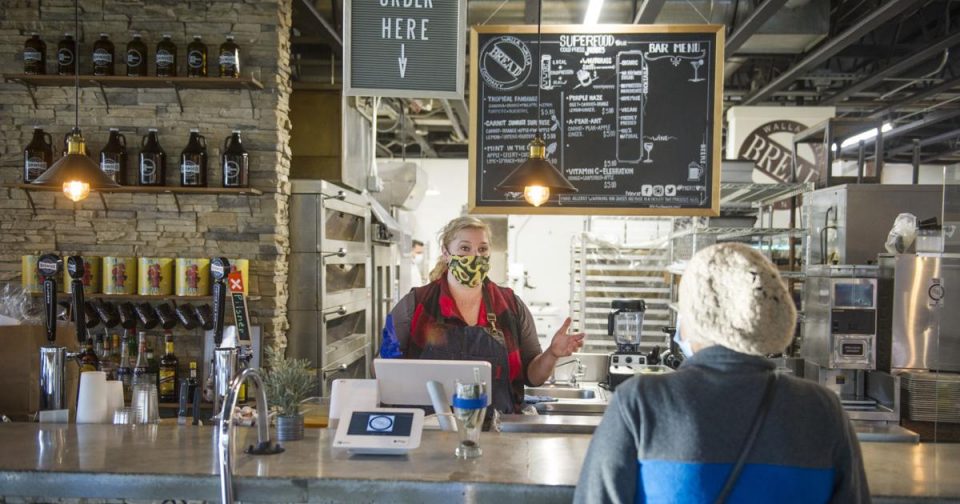 Barista Alex Cerone helps a customer at Livit Coffee in July 2019.
