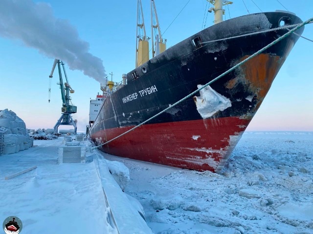In Pevek, the cargo ships unloaded several thousand tons of good, most of it construction materials to the Baymskaya copper mining project, whereupon they froze into the sea-ice of the local port. They remained captured in remote town for several weeks.