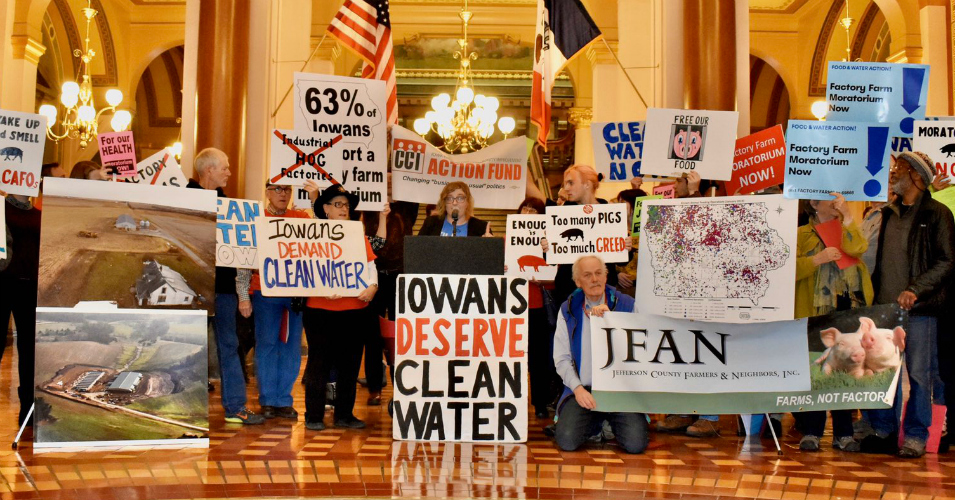 With less than two weeks until the Iowa caucuses, a coalition of local and national groups is calling on lawmakers in the state and the field of Democratic 2020 presidential candidates to put an end to the building of new factory farms in the state as part of a national push to curtail the animal cruelty, environmental destruction, and harm to farming communities that go hand in hand with such operations.