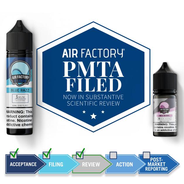 My Vape Order, Inc. (MVO), a trusted provider of nicotine e-liquid products marketed under the AIR FACTORY® brand, has announced that on October 9, 2020, the U.S. Food and Drug Administration (FDA) issued a Filing Letter notifying MVO that the AIR FACTORY® Premarket Tobacco Application (PMTA) met FDA’s PMTA filing requirements and was moving forward into FDA’s substantive scientific review phase.