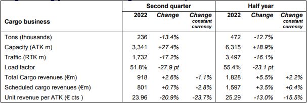 The airline group said that second-quarter revenues increased by 2.6% year on year to €918m, while cargo traffic dropped by 17.2% on last year to 1.7bn revenue tonne km despite a 27.4% increase in capacity to 3.3bn available tonne km.
