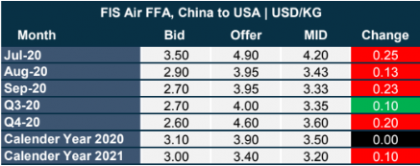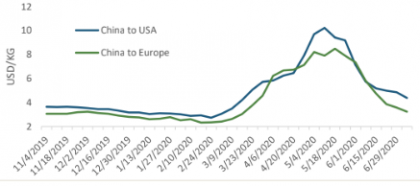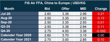 Air freight has made gains in e-commerce. But July is typically a slow month for the mode, with sea freight in its peak season, and this year appears to have a similar pattern. Freight Investor Services said: “Prices continue to drop throughout most of the basket routes.