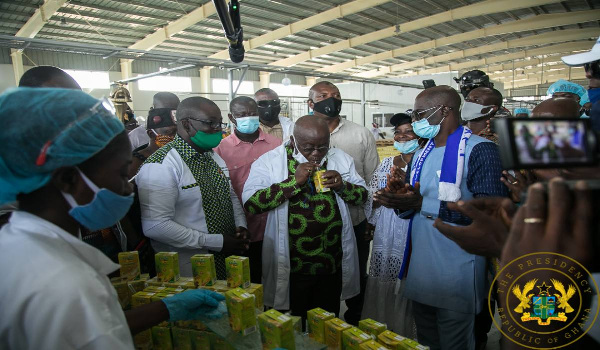 According to President Akufo-Addo, the Ekumfi Fruits and Juices Factory is a wholly-owned Ghanaian company, and has one of the most modern, automated agro-processing plants in the country.