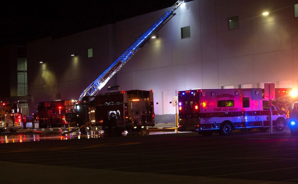 The fire began about 11 p.m. inside the Amazon distribution center at 22 Hightstown-Cranbury Station Road in Cranbury, according to a worker at the building.