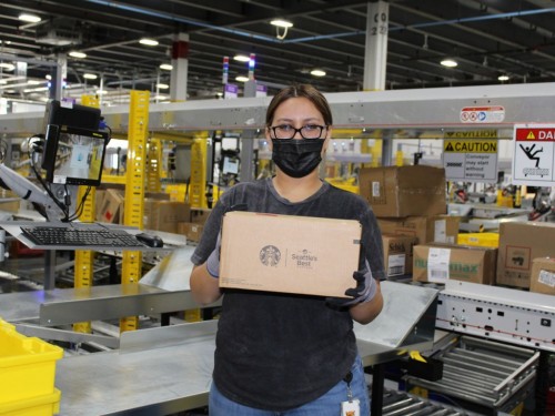 The fulfillment center currently employs more than 1,000 full-time associates who will pick, pack and ship small items such as books, electronics, school supplies and home goods. After a morning of safety training and celebration, associates received the first item into the new building: a box of Keurig K-Cup pods.