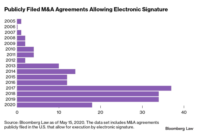 As for deals getting closed remotely, M&A agreements allowing execution by electronic signature have already long been on the rise, but we expect the pandemic to push this further toward universality.
