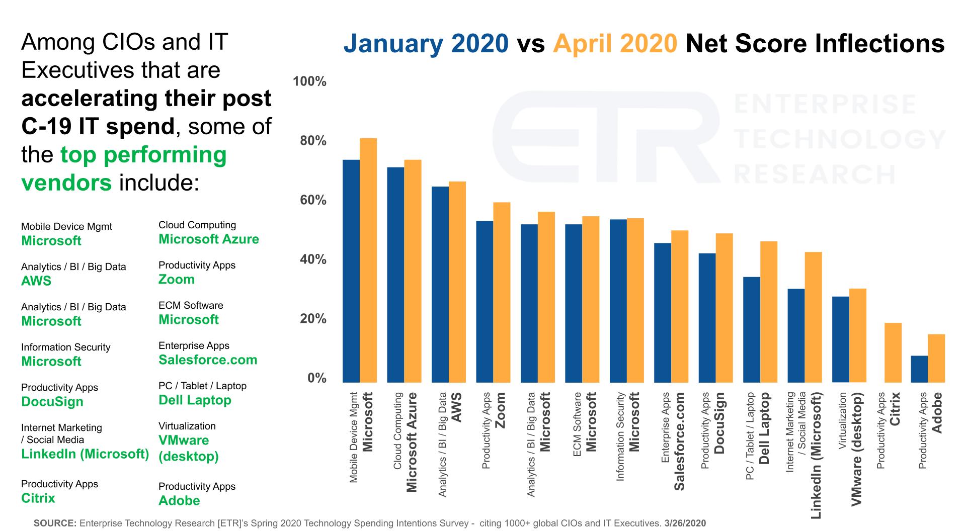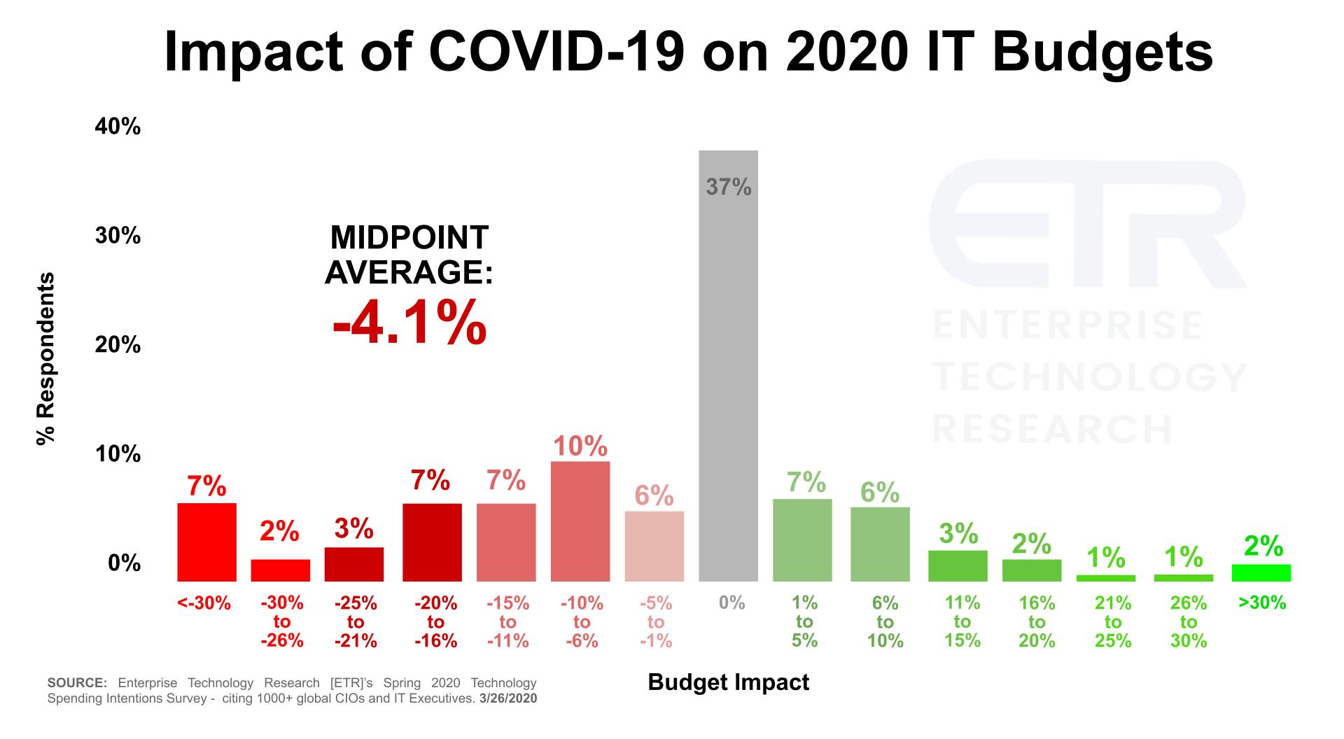 We brought in Sagar Kadakia, ETR’s director of research, to explain this dynamic further and assess theCOVID-19 IT spending impact. Here’s what he told us:
