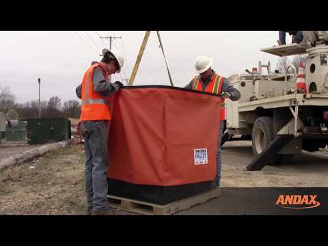 The TCP is constructed of heavy-duty, puncture-resistant material with a super absorbent inner core. Engineered with four interior anchor points on the pallet and two 10,000-pound ratchet straps to secure the load, the flexible containment system creates a liquid-tight enclosure. The TCP can then be safely lifted, moved or stored using the integrated pallet.