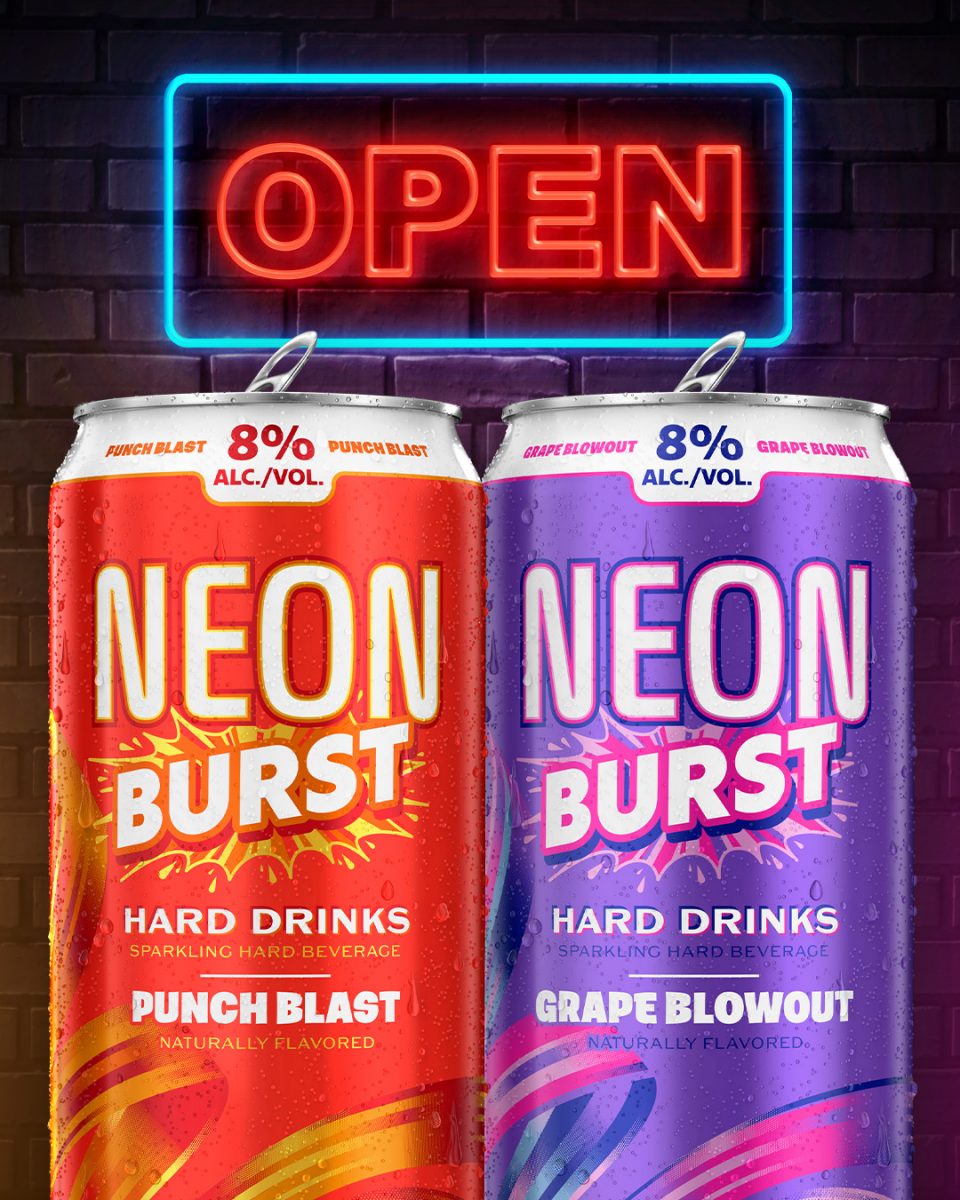 NEW YORK, New York – Introducing NEON BURST™, a brand new bold, full-flavored 8% ALC./VOL. sparkling hard beverage bursting with an electrifying blend of fruit flavors. As the latest product innovation from America’s leading brewer Anheuser-Busch, NEON BURST™ is now available at convenience stores nationwide in two varieties, including: