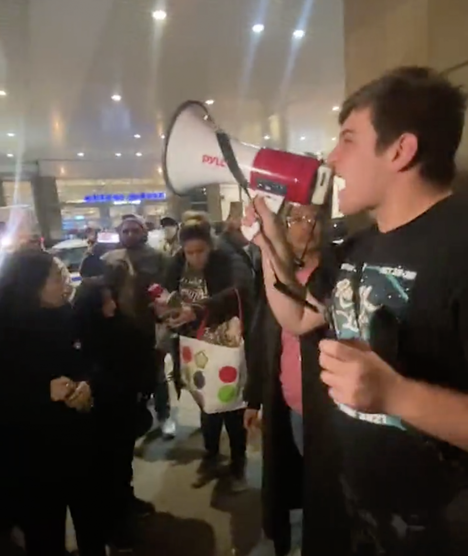 “No drinks, bro,” one of the protesters said to the person filming the video.