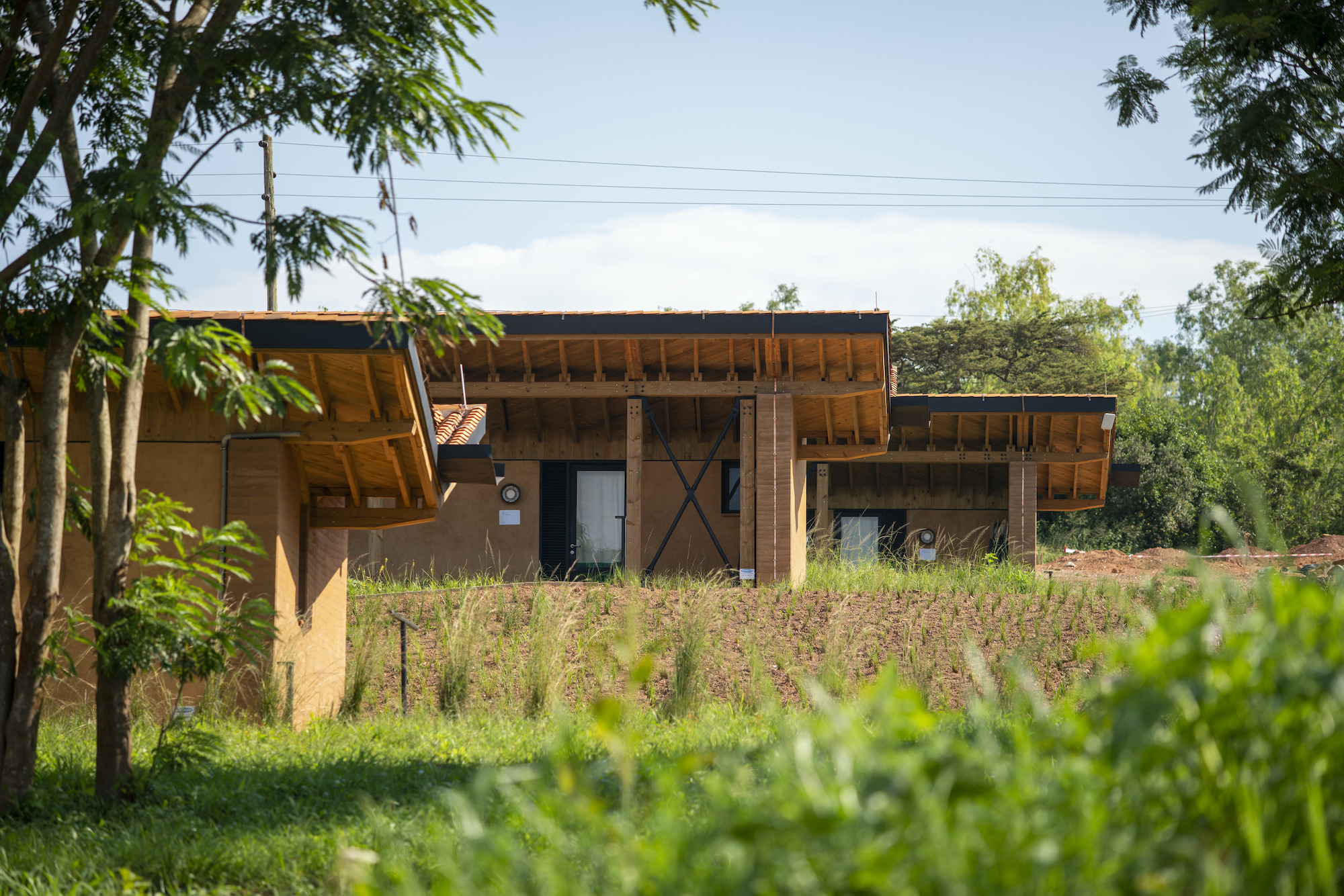 The Rwandan Institute for Conservation Agriculture (RICA) is our best example to date. We’ve focused on the entire lifecycle of the project to ensure the project will be climate positive – through site regeneration – this decade. We’ve done this through a careful analysis of the site to establish conservation areas, then a landscape plan based on One Health principles to rebuild both ecological and agricultural productivity. To reduce the project’s embodied footprint, we focused on locally sourced earth-based structures to reduce cement and steel, as well as wood roofing in place of the standard steel. The project is entirely off-grid, relying on a solar array to power the campus, including a water system that draws from and drains back into the lake. Working with RICA we’re developing a reforestation that will serve to sequester and inset the project’s carbon footprint entirely on site.