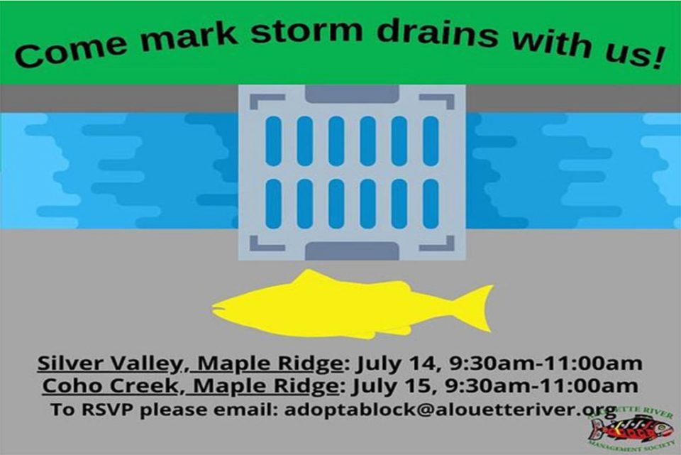 The Alouette River Management Society is looking for volunteers to paint yellow fish at storm drains along Maple Ridge roadways.