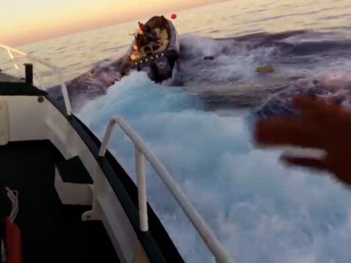 At one point, the video shows one agent’s outstretched hand with a firearm, vigorously signalling for the boat to stop.