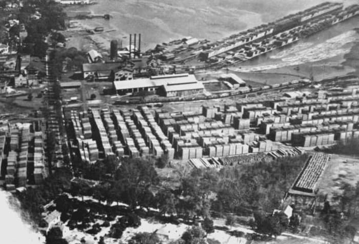 A photo from the State Archives of Florida shows an aerial view of the building when Wilson Cypress Company and Florida Furniture Industries operated out of the space in the 1940s.