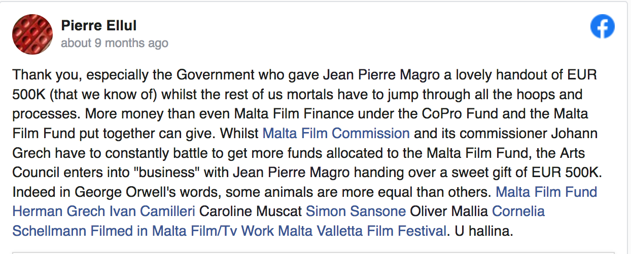 Falkun Film’s Pierre Ellul, a renowned film producer who has worked with Hollywood productions in Malta and works extensively to bring foreign productions to the country, slammed the decision to fund a film widely deemed to be nothing more than expensive propaganda.