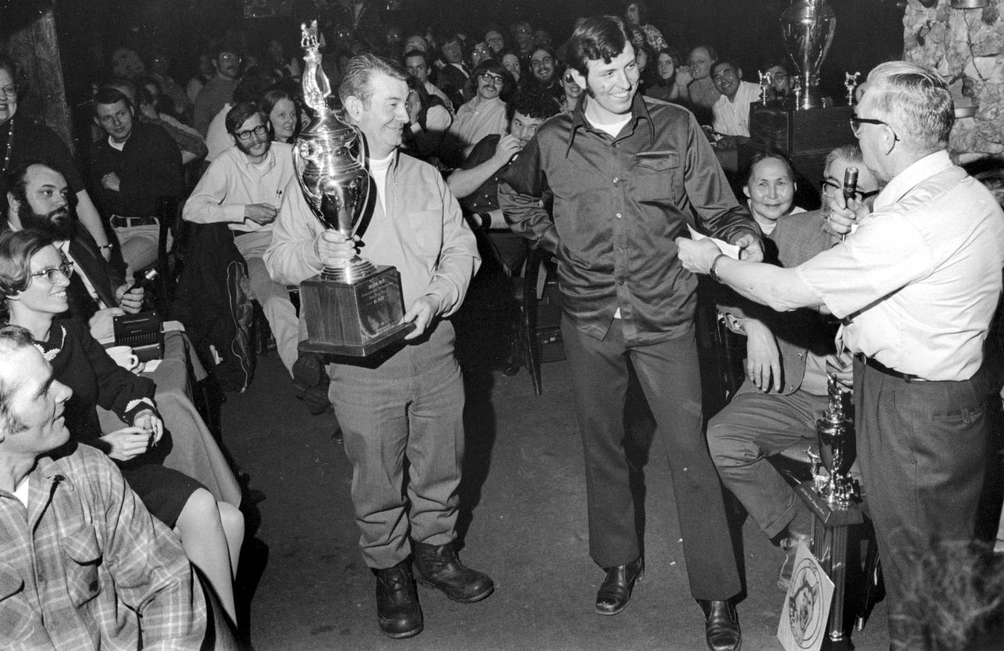A tradition coalesced where mushers had to attend the local banquet in order to collect their prize check, and they had to get up and give a short speech about the race. Farley takes pride in explaining how the Nome coordinators went all out for the guests, flying in a chef from an Anchorage hotel to prepare the finest of fare in the local school kitchen.