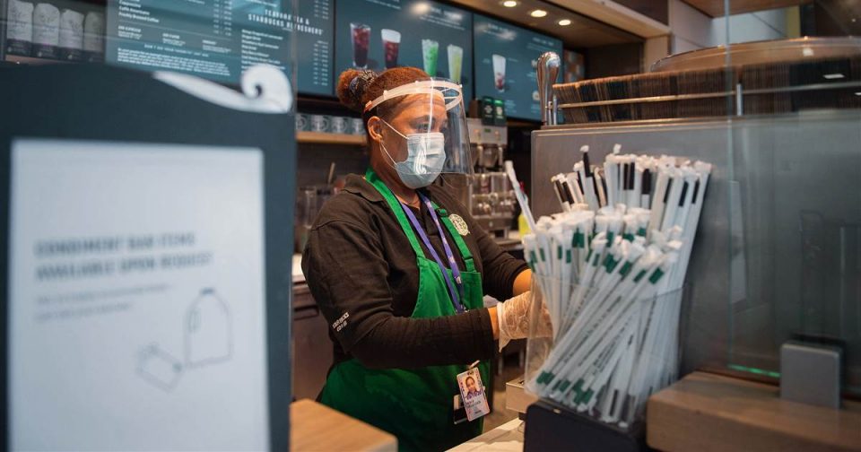 “Not only should every grocery and retail company mandate the wearing of masks and social distancing, our state and local governments must establish these uniform safety standards,” Marc Perrone, president of the United Food and Commercial Workers International Union, which does not represent any Starbucks workers, said in an emailed statement. “For as long as this pandemic endures, companies must implement and enforce store safety measures, and customers must be encouraged to shop smart.”