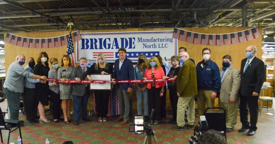 On Tuesday, the Ashland Shirt Factory’s new owner, Brigade Manufacturing North LLC, held a ribbon cutting ceremony to officially reopen the factory with the help of the Schuylkill Chamber of Commerce.