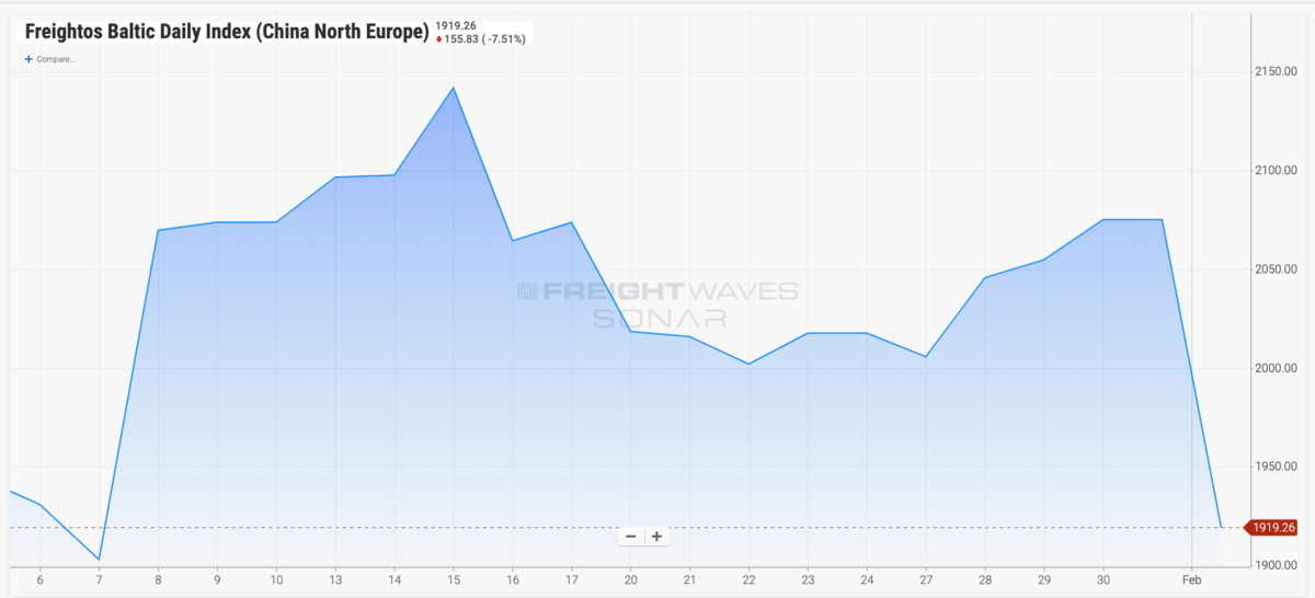 Asia-North Europe container rates (SONAR: FBXD.CNER)