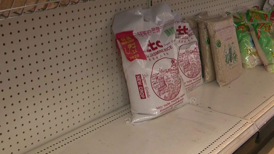 Imelda Roberts says she’s been working at the market for 13 years and has noticed her customers seem to be stockpiling the rice. She said she hopes she can keep up with demand.
