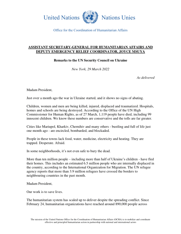 Civilians in Ukraine desperately need this assistance and protection.