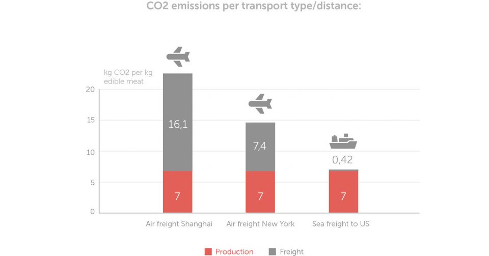 Salmon already has a much lower carbon footprint than other animal foods such as pork or beef but replacing air freight with sea freight makes it a very sustainable food choice.